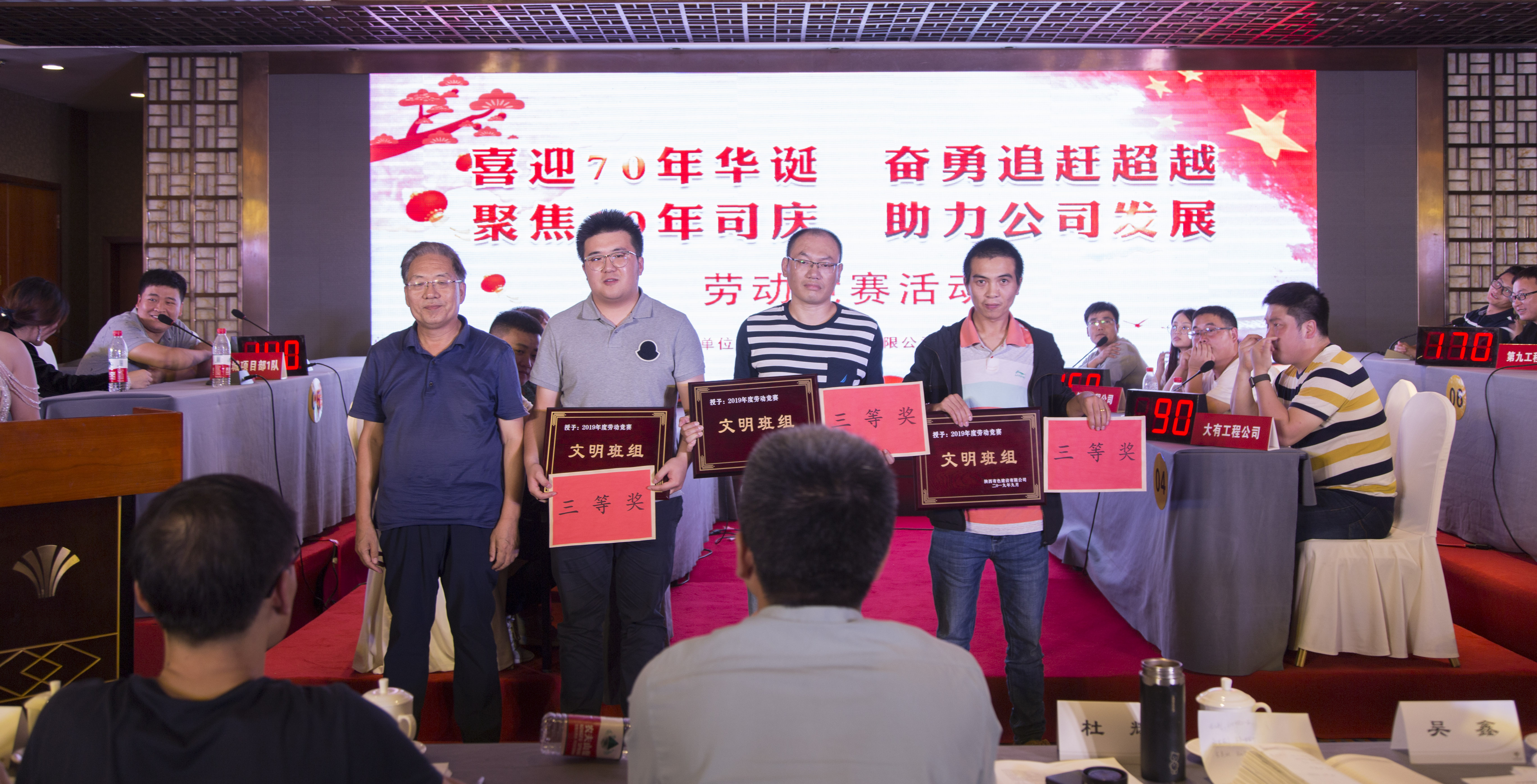 9月30日,由公司工會牽頭,科技質(zhì)量部、生產(chǎn)運行部、項目管理部參與協(xié)辦的“喜迎70年華誕 奮勇追趕超越;聚焦10年司慶 助力公司發(fā)展”主題勞動競賽復(fù)賽及決賽在陜西世紀(jì)金源大飯店二樓舉行。由各生產(chǎn)單位組成的12支代表隊,63名選手及公司各相關(guān)領(lǐng)導(dǎo)參加了活動。