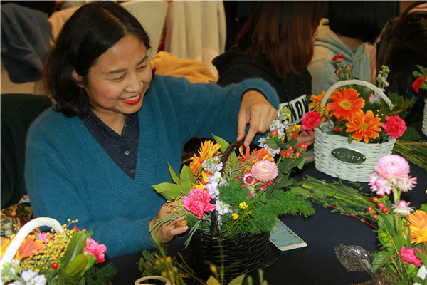 在老師的指導(dǎo)下,大家開始修剪枝葉、編綠葉、擺造型……一支支嬌艷欲滴的鮮花通過大家精妙的構(gòu)思搭配,不一會(huì)就變成一籃藍(lán)精美的花藝作品?;顒?dòng)現(xiàn)場花香四溢、滿室芬芳,大家與花相伴,歡聲笑語,度過了一個(gè)開心快樂的節(jié)日。