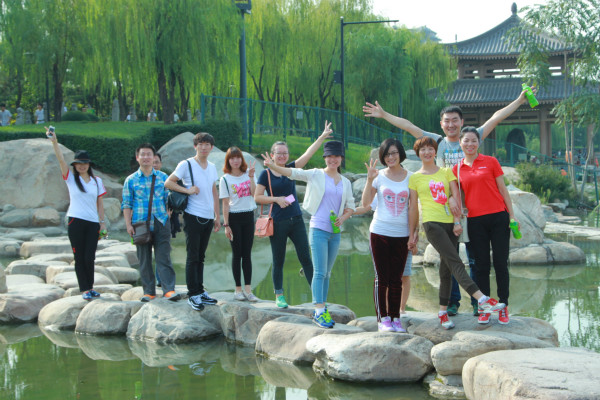活動(dòng)開(kāi)始前,大家就已換上運(yùn)動(dòng)衣和運(yùn)動(dòng)鞋,精神抖擻,整裝待發(fā)。下午三點(diǎn)半活動(dòng)正式開(kāi)始。路線規(guī)劃是從曲江遺址公園西門(mén)出發(fā),繞著曲江南湖行走一圈,再回到起點(diǎn)。曲江南湖是古都長(zhǎng)安有名的風(fēng)景區(qū),曲江南湖周?chē)G樹(shù)環(huán)繞,空氣清新,各種吸引眼球的雕塑和亭榭散布于曲江遺址公園內(nèi),選擇此地進(jìn)行健步走,員工們可以邊行走邊觀賞美景,既鍛煉了身體,又放松了心情。