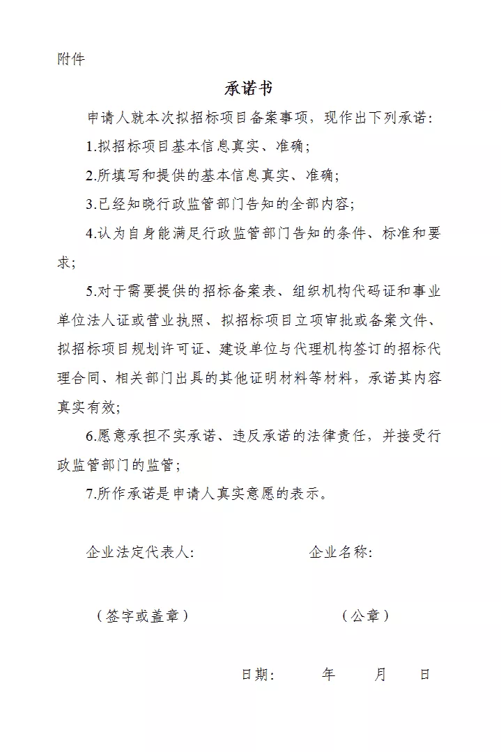 ● 應(yīng)當(dāng)按照告知承諾書的約定,向招投標(biāo)監(jiān)管部門提交相關(guān)材料。作出承諾的申請人,須由法定代表人簽字,并加蓋單位公章。在“其他相關(guān)附件”中上傳簽字印鑒齊全的書面承諾書。